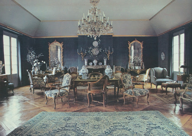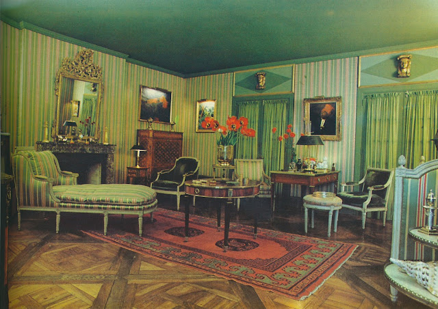 Also interesting is the information provided by the 1974 Architectural Digest article, in which these photos appeared. According to the text, Kennedy once worked for Syrie Maugham, and both men took over her U.S. operation in the 1950s. The interview for this article must have been lively, with much banter about Kennedy's former employer. I'll leave you with this exchange between the two men, in which both share their thoughts on Maugham: