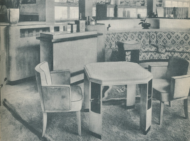 Below, you can see the modern card tables- and their modern surroundings- that caught Genauer's eye. And since drinking and smoking went hand-in-glove with card playing, you'll also see a smattering of bars and one very stylish smoking room.